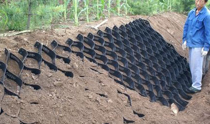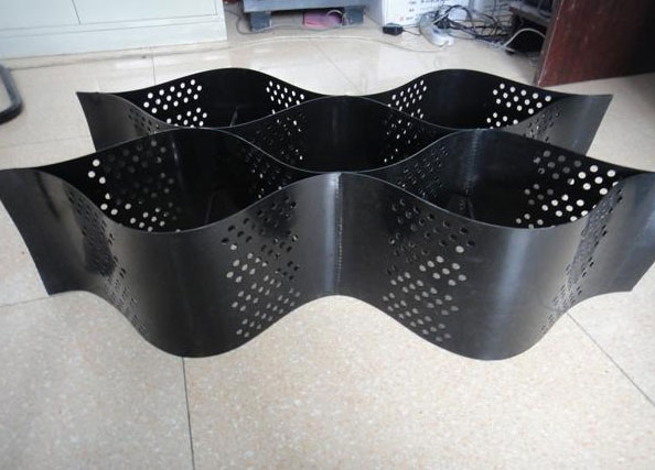 土工格室是由高強(qiáng)度的HDPE或PP寬帶或土工帶,經(jīng)過(guò)焊接(或扣接)而形成的蜂窩狀立體網(wǎng)格結(jié)構(gòu)。它伸縮自如,運(yùn)輸時(shí)可縮疊起來(lái),使用時(shí)張開(kāi)并充填土石或混凝土,構(gòu)成具有強(qiáng)大側(cè)向限制和大剛度的結(jié)構(gòu)體。